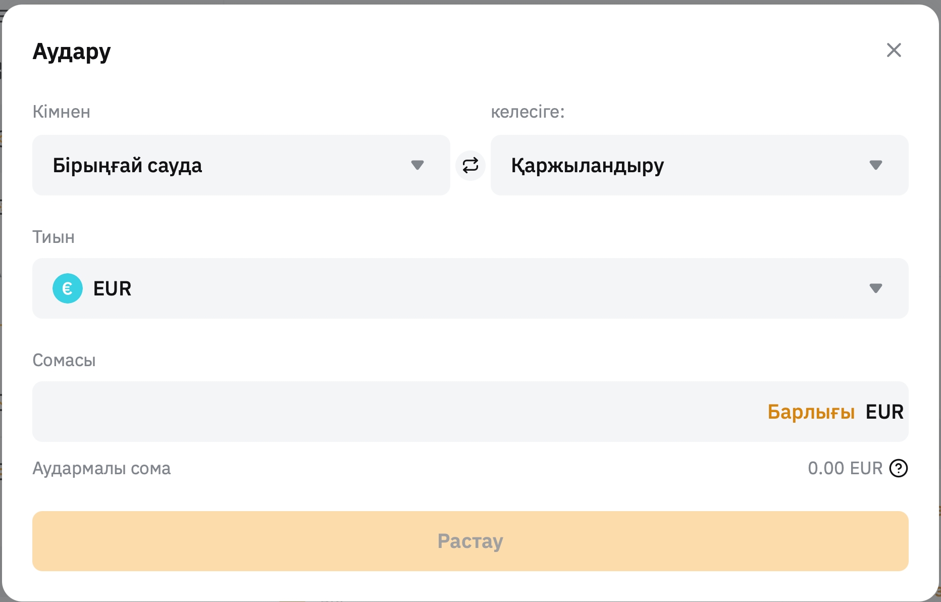 Фиат валютасындағы депозит қаржыландыру аккаунтыңызға аударылады. Ордер орналастырмай тұрып фиаттық валютаны қаржыландыру аккаунтыңыздан спот аккаунтыңызға аударыңыз.
