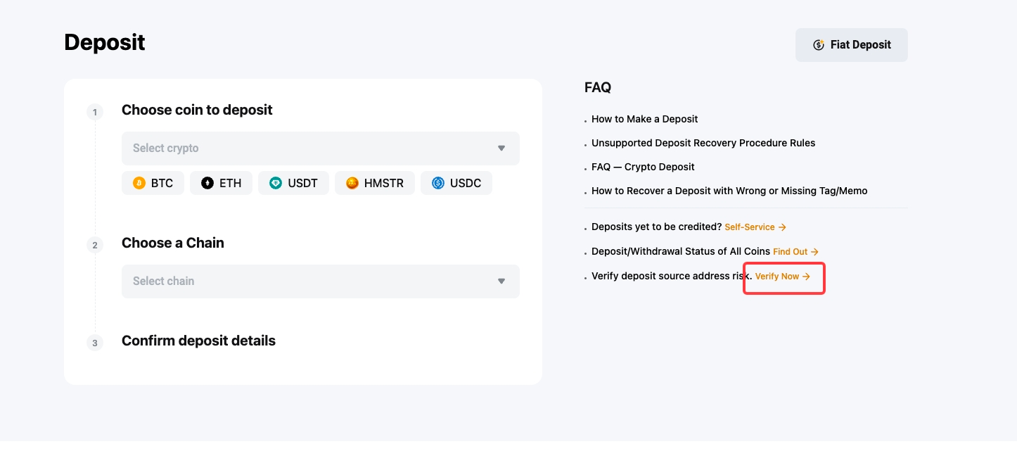 Депозит әмиян мекенжайына тәуекелдерді бағалау жүргізудің қадамдық нұсқаулығы осында.