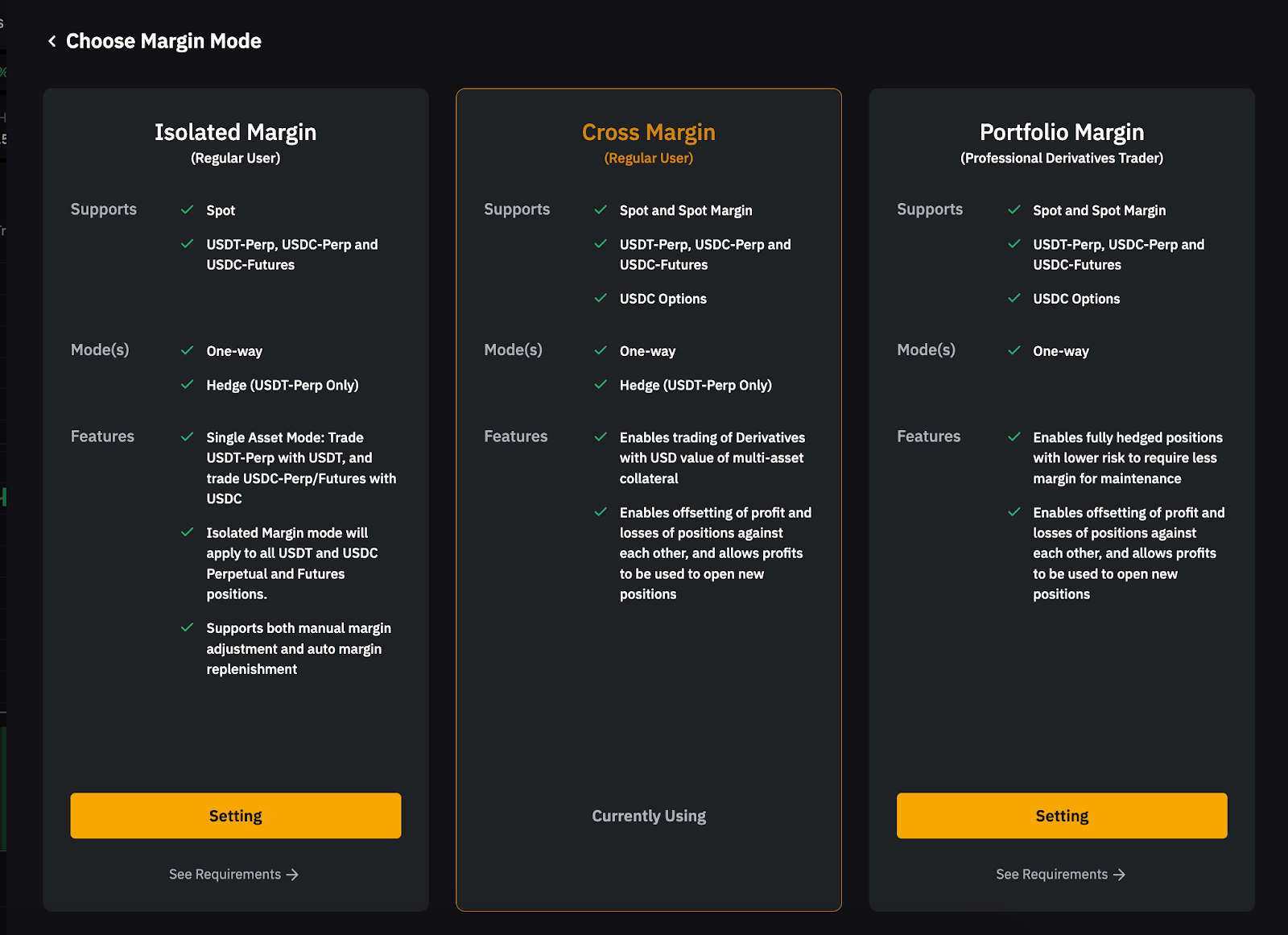 — Бірыңғай сауда аккаунтындағы оқшауланған маржа, кросс маржа және портфельдік маржа режимдерінің арасындағы айырмашылықтар туралы көбірек білу үшін мына сілтемеге өтіңіз.