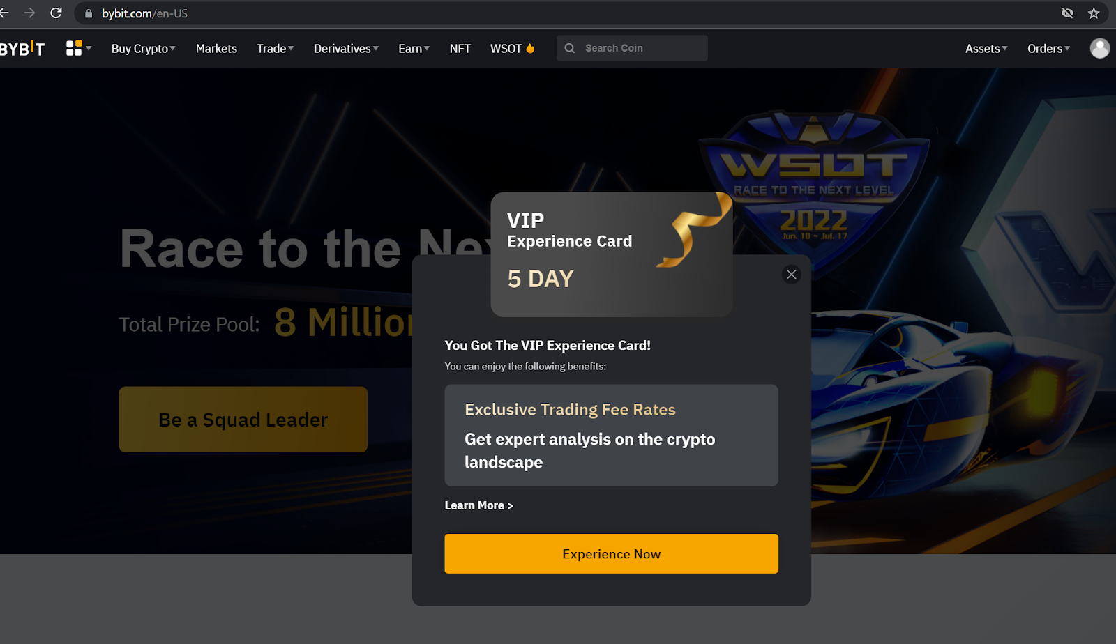 Bybit Kazakhstan әлеуетті VIP пайдаланушылар үшін VIP сынақ карталарын ұсынады. VIP сынақ картасының көмегімен сіз VIP болу талаптарын орындамас бұрын VIP 1 деңгейі әкелетін көптеген артықшылықтарды көре аласыз.