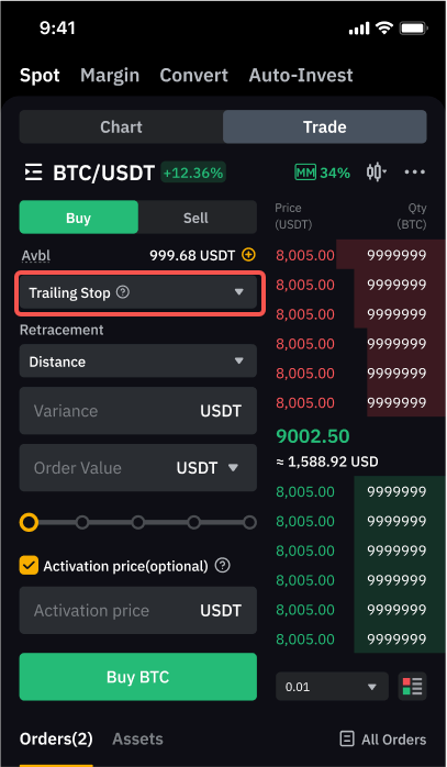 Міне, Spot Trading-те трейлинг-стоп тапсырысын қалай орналастыруға болатыны туралы қадамдық нұсқаулық.