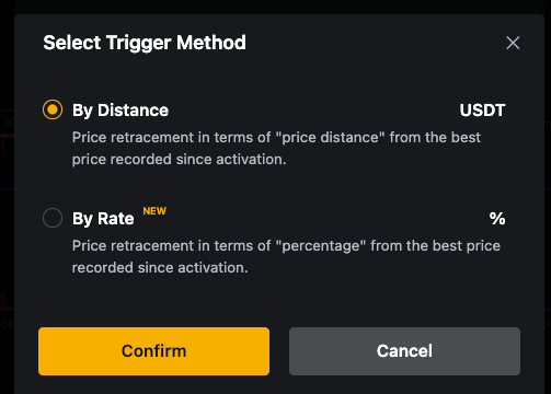 2-қадам: Өзіңізді таңдаңыз Қайтару триггер әдісі (ставка немесе қашықтық бойынша) және орнатыңыз Іске қосу бағасы қажет болса. Содан кейін басыңыз Растау.