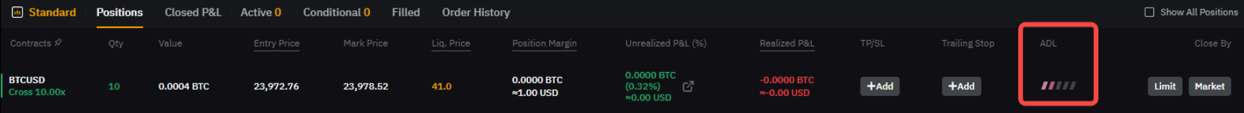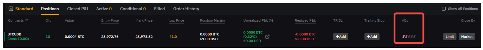 Трейдерлер әр позицияның ADL рейтингін позиция қойындысынан біле алады.