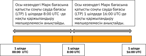 - 8:00 UTC және 16:00 UTC арасында есептелген қаржыландыру мөлшерлемелері 16:00 UTC -де ауыстырылады.