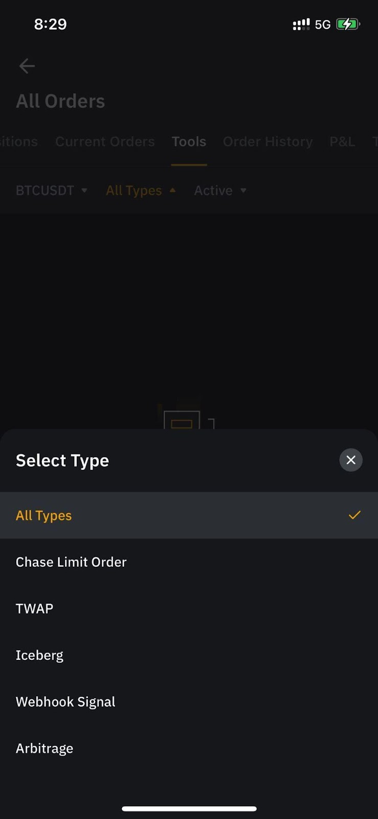 Чтобы просмотреть историю инструментов и ордера, размещённые через функцию динамического дельта-хеджирования, перейдите на страницу «История инструментов».