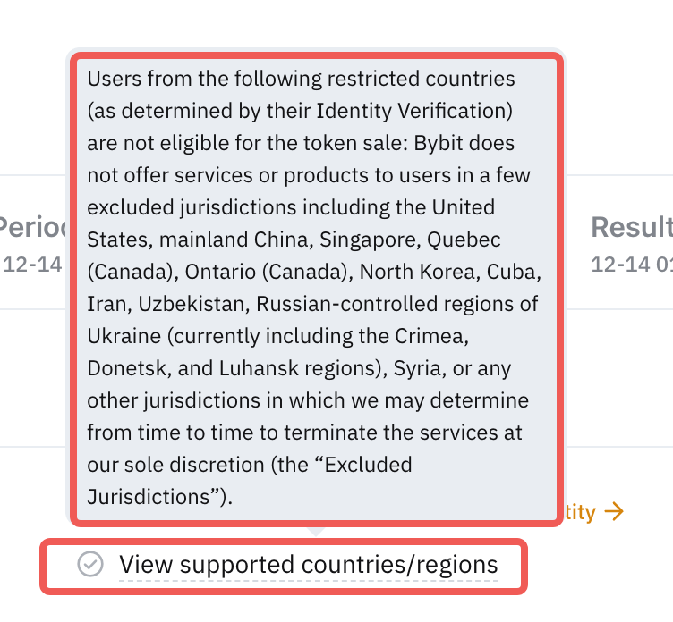 Примечание: Пользователи из необслуживаемых стран/регионов Bybit Kazakhstan или проекта не могут участвовать в ByStarter.