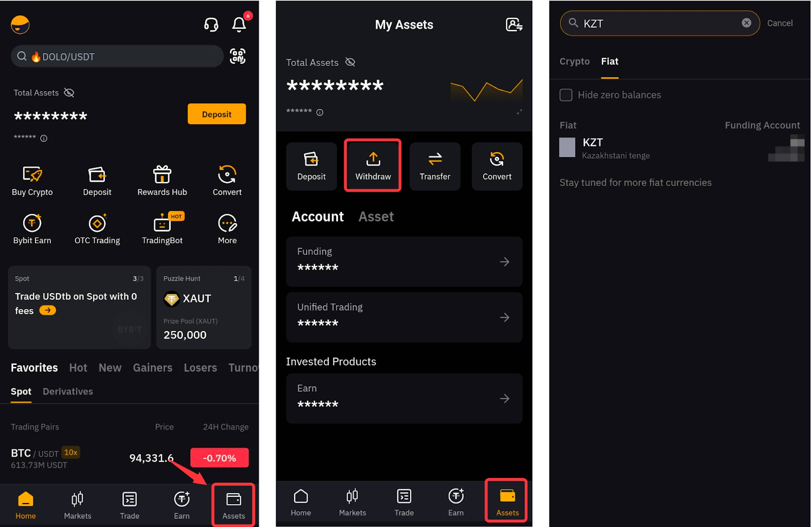 Только Казахстанский тенге (KZT) поддерживается для пользователей Bybit Kazakhstan. Список поддерживаемых валют для фиатных депозитов можно найти на странице Fiat Redrawal.
