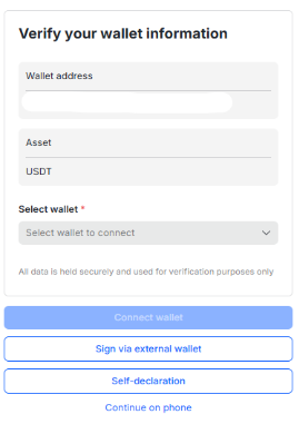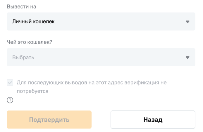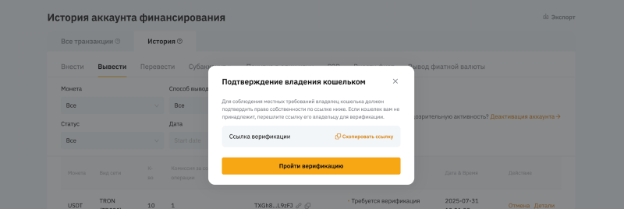 Обратите внимание, что в отдельных случаях может потребоваться прохождение процедуры верификации адреса кошелька.