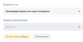 При выводе криптоактивов на: