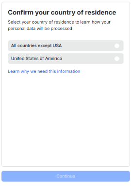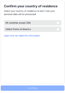Некостадиальный/холодный кошелек | Шаг 1. Подтвердите страну проживания владельца кошелька. |