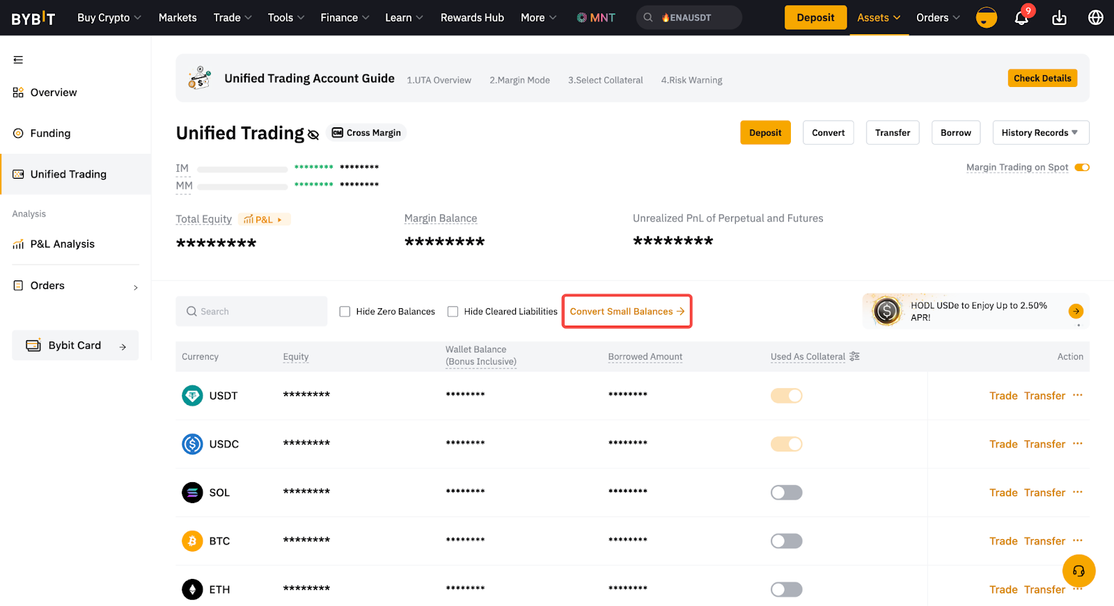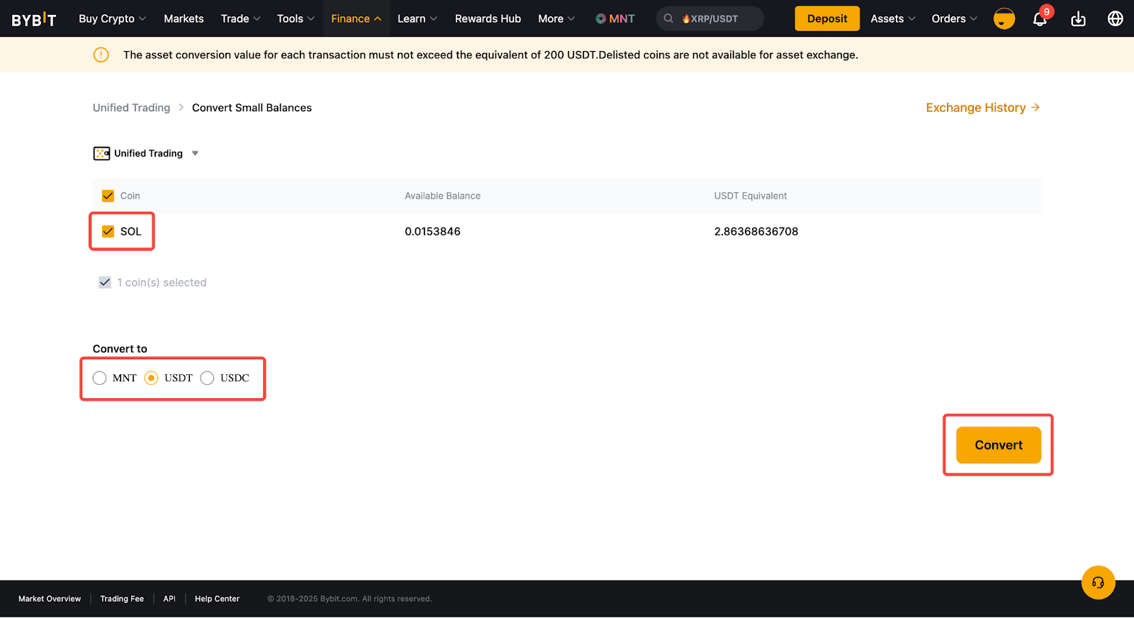 Чтобы повысить эффективность использования небольших активов в вашем аккаунте Bybit Казахстан, вы можете конвертировать любые активы стоимостью меньше 0,001 BTC или эквивалент в MNT, USDT или USDC за одну операцию, выполнив четыре простых шага. Конвертация мелких остатков поддерживается как для Финансового аккаунта, так и для Единого торгового аккаунта. Обратите внимание, что конвертация небольшого баланса возможна не чаще одного раза в час.