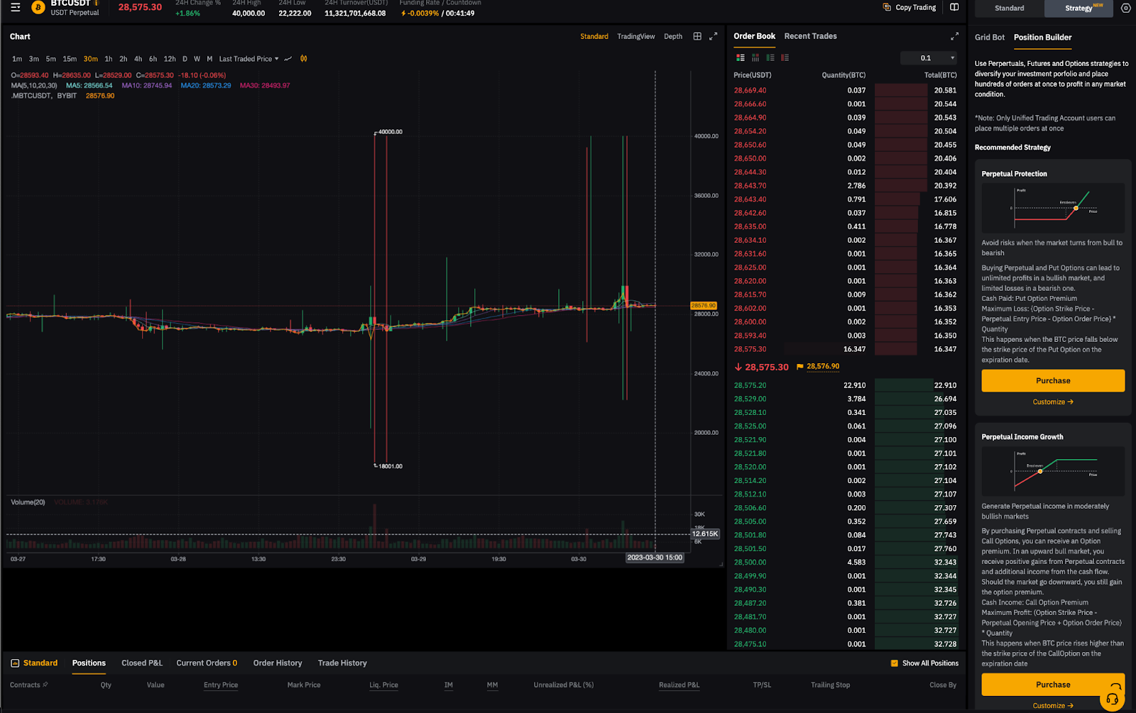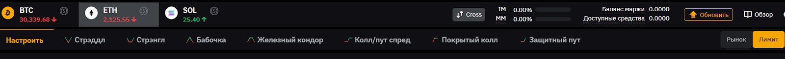 Для бессрочных USDT и USDC контрактов, USDC фьючерсов и USDC опционов можно настроить до 200 позиций. Кроме того, вы получите доступ к Стратегиям Стрэддл, бабочка, железный кондор, стрэнгл, колл-пут спред, покрытый колл и защитный пут для эффективного инвестирования в различных рыночных ситуациях.