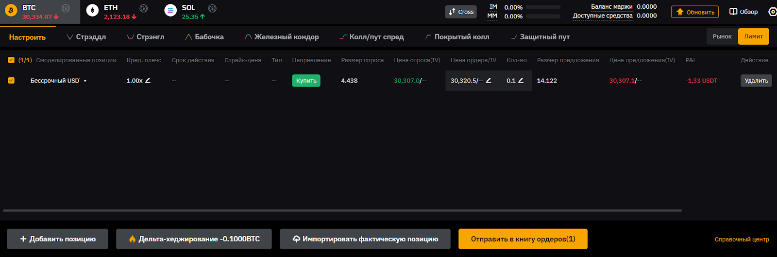 Конструктор позиций — это эффективный инструмент для создания сложных портфелей с использованием таких деривативов, как бессрочные контракты, фьючерсы и опционы. Он позволяет диверсифицировать инвестиции, предлагая ряд контрактов и индивидуальных стратегий и размещая до сотни ордеров за раз.