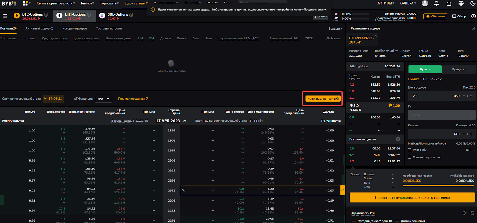 Шаг 2: Разместите ордер с помощью Конструктора позиций.
