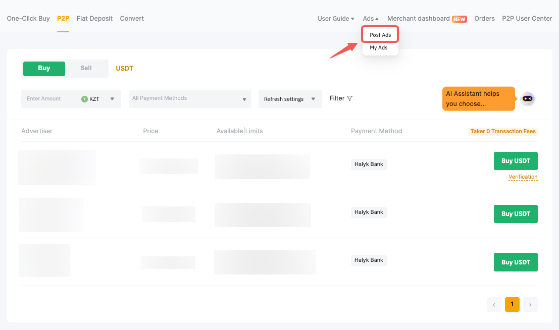 Вот подробное пошаговое руководство о том, как вы, как рекламодатель, можете опубликовать свою первую рекламу P2P на Bybit Казахстан.