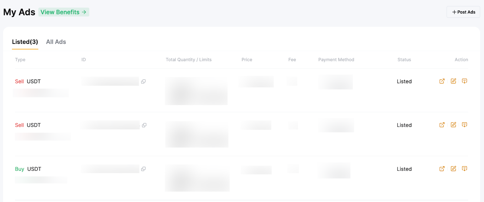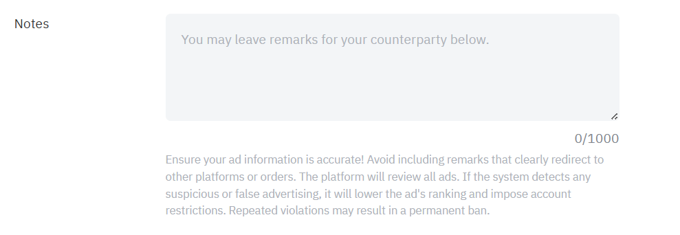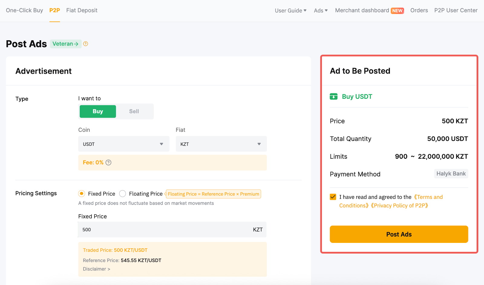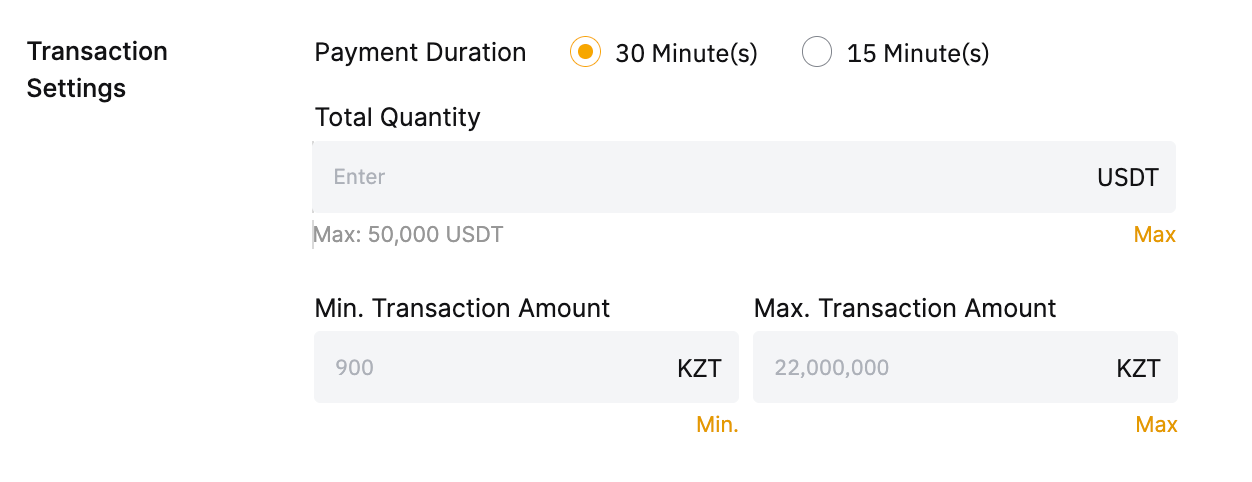 Для получения дополнительной информации о минимальной и максимальной сумме USDT, которую можно торговать за рекламу, см. раздел «Часто задаваемые вопросы — P2P Trading».