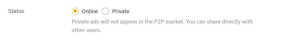 2. Непубличные: Реклама не будет отображаться на странице рекламы P2P и доступна только трейдерам с QR-кодом или URL-ссылкой.
