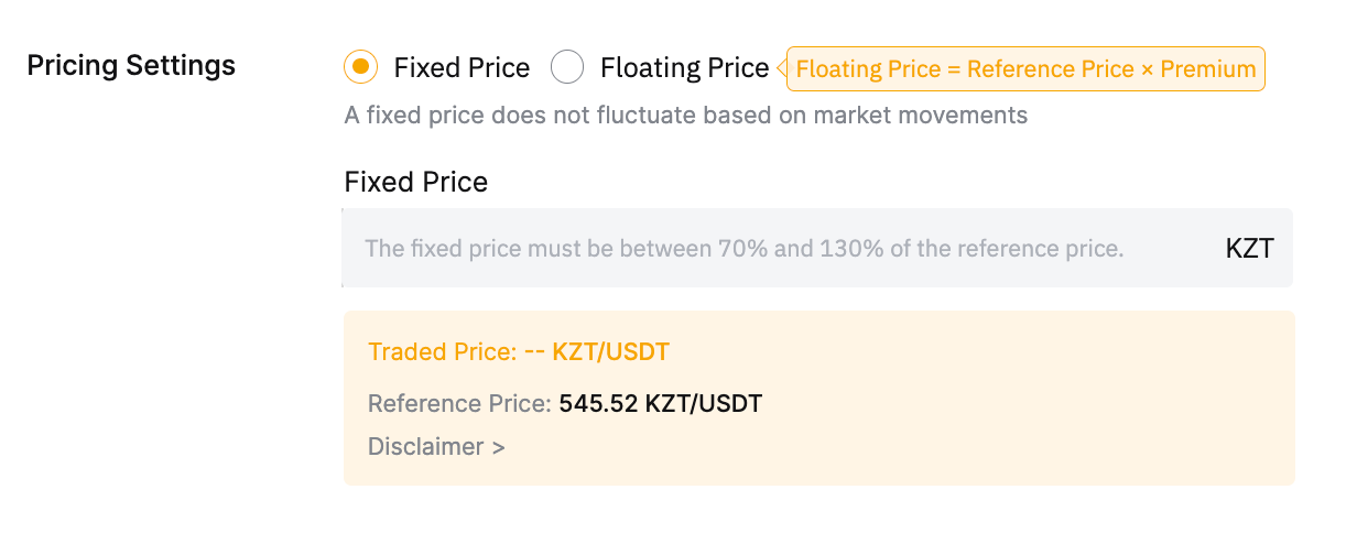 2. Введите цену (за USDT) или премию, которую вы хотите предложить