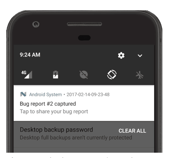 Шаг 3. Чтобы поделиться отчётом о багах, нажмите на полученное уведомление.