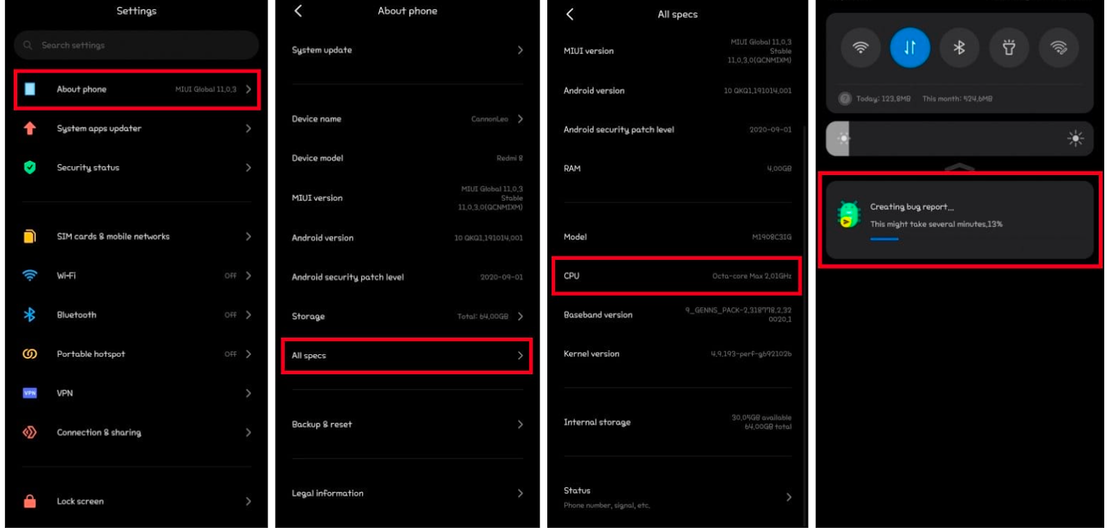 Чтобы получить отчёт о багах прямо с устройства, необходимо выполнить следующие шаги: