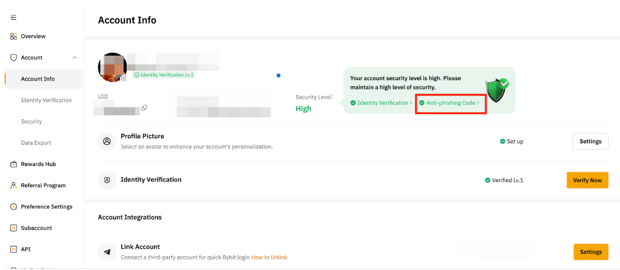 Сектор криптовалют быстро расширяется, привлекая не только энтузиастов, трейдеров и инвесторов, но и мошенников и хакеров, которые хотят использовать этот рост. Код защиты от фишинга — это важная мера безопасности, предназначенная для защиты пользователей от фишинговых атак. Антифишинговый код — это уникальный код, который известен только вам. После настройки этот код будет отображаться во всех официальных электронных письмах и SMS-сообщениях от Bybit Kazakhstan. Он служит вашим персональным знаком аутентификации, который помогает отличить подлинные сообщения от попыток фишинга.