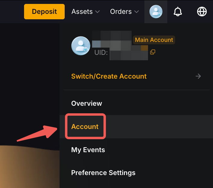 Шаг 1. Войдите в свой аккаунт Bybit Kazakhstan. На главной странице нажмите Аккаунт.