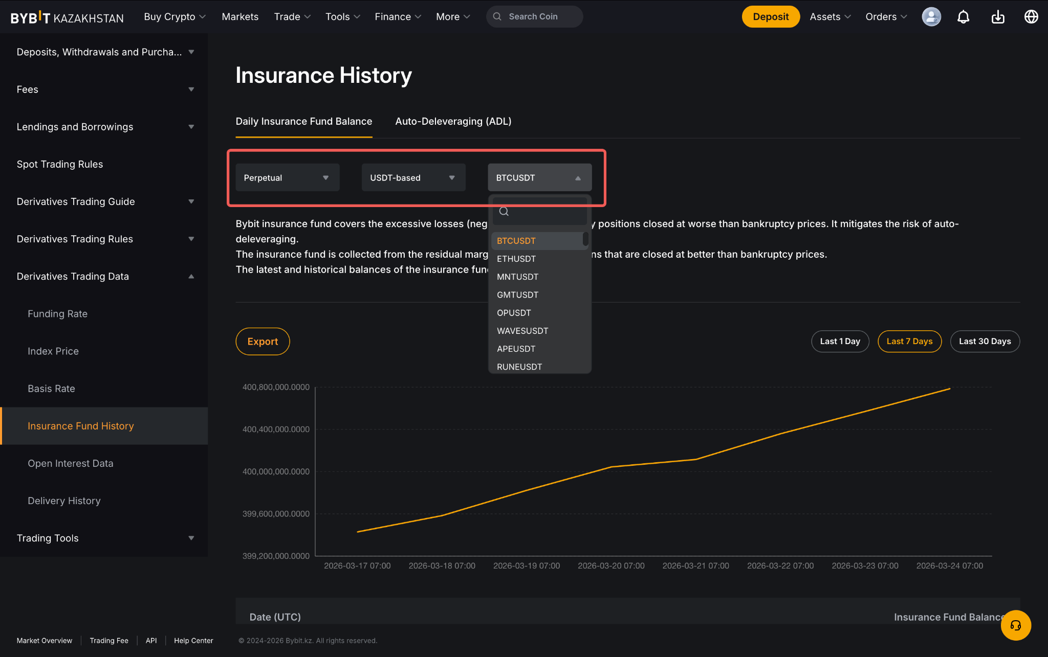 Чтобы посмотреть баланс страхового фонда Bybit Kazakhstan для всех бессрочных и срочных контрактов, перейдите в раздел «Обзор рынка Bybit Kazakhstan» и выберите «История страхового фонда».