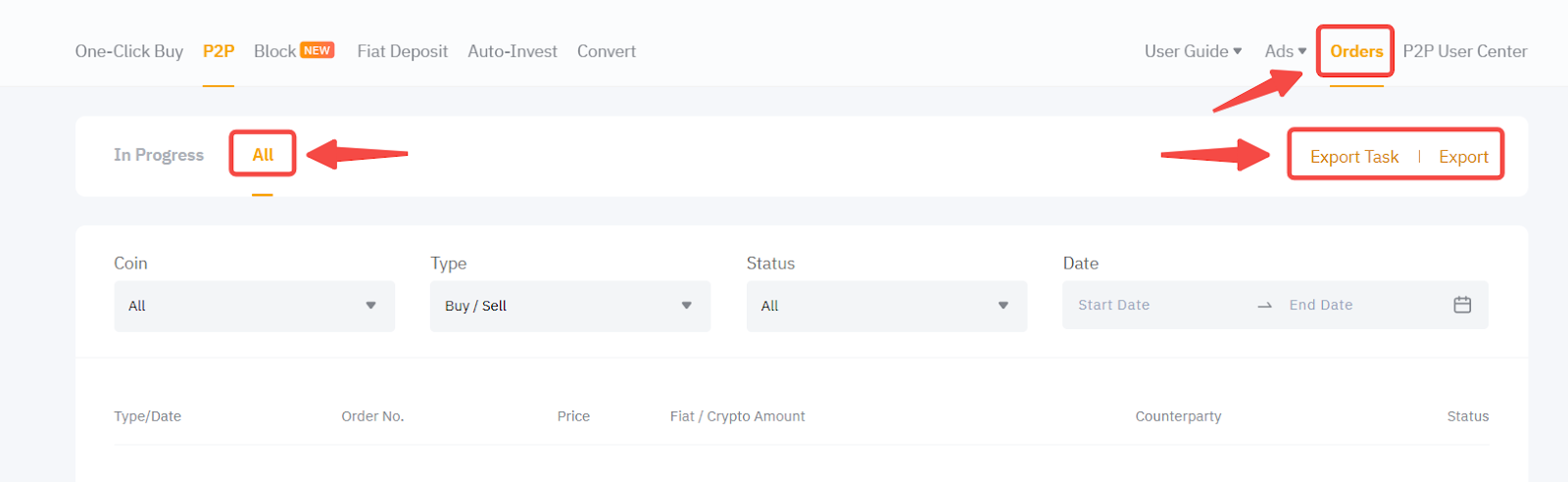 Вы можете экспортировать информацию о ваших заказах P2P, нажав кнопку Экспорт в правом верхнем углу этой страницы. Обратите внимание, что функция экспорта доступна только на веб-сайте Bybit Казахстан.