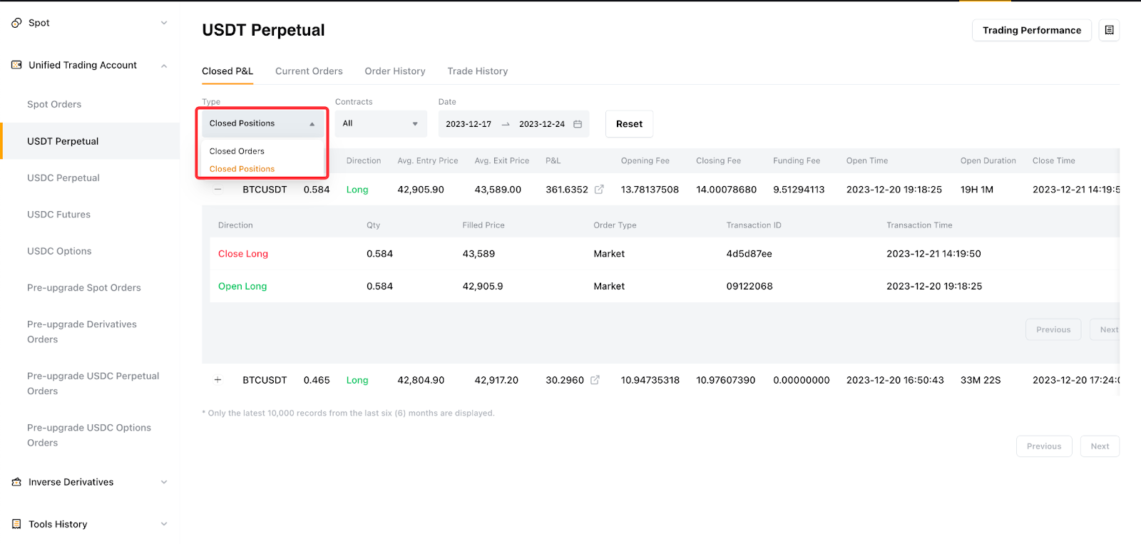 1) В истории закрытых прибылей и убытков отображается окончательная позиция прибылей и убытков с учетом платы после закрытия позиции. Вы можете увидеть два типа закрытых прибылей и убытков: Закрытые должности и закрытые заказы.