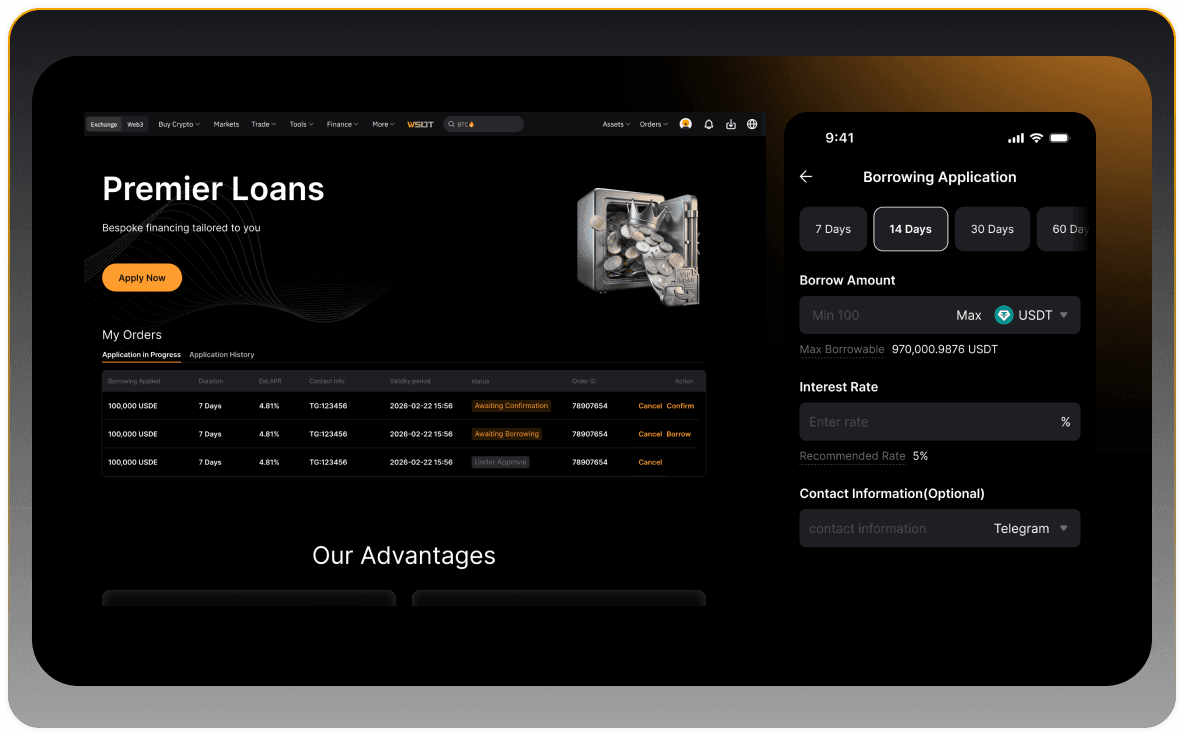 Выберите «Оформить заем» в заявке. Проверьте данные, предоставьте обеспечение и нажмите «Подтвердить». Средства будут зачислены мгновенно.